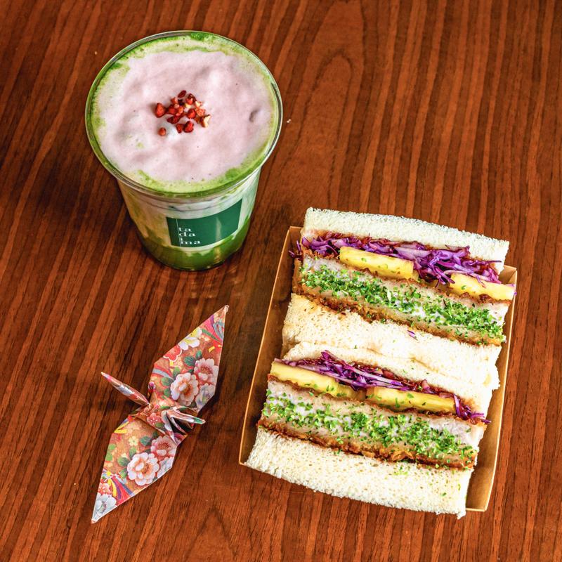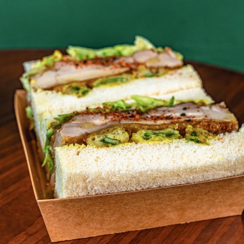 Deep-fried Japanese pork cutlet, red cabbage, and house sauce.